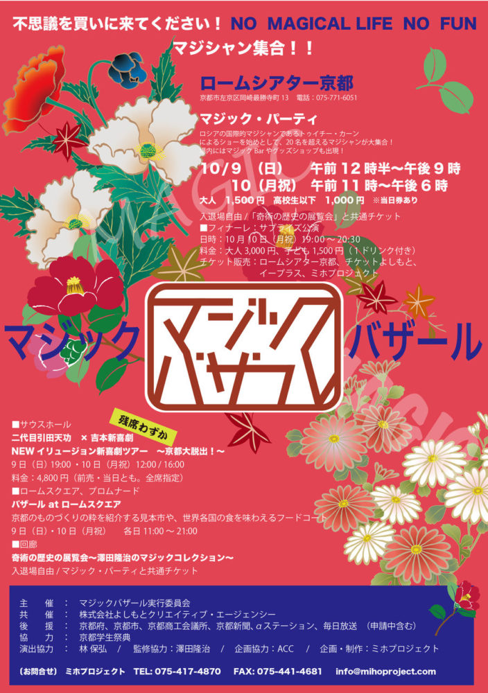 不思議を買いに来てください! NO MAGICAL LIFE NO FUN マジックバザール マジック・パーティ ロシアの国際的マジシャンであるトゥイチー・カーン によるショーを始めとして、20名を超えるマジシャンが大集..